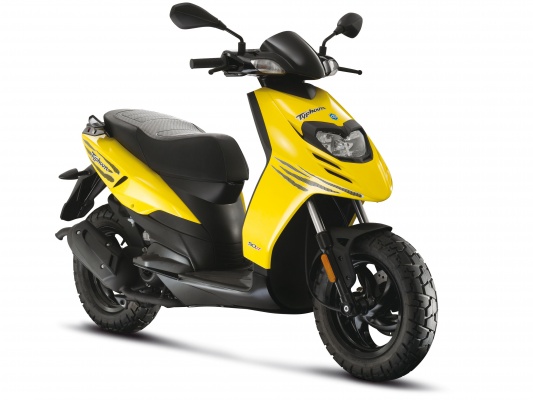 Компания Piaggio представила новый Typhoon 50 по очень соблазнительной цене – всего 1400 евро или 1850 долларов США. Новинка интересна внешне и показывает прекрасные результаты по динамике и скорости, благодаря обновленному двигателю. Двигатель теперь четырехтактный, четырехклапанный, объемом 49 см3. Охлаждение – воздушное. Также новинка оборудована 14 дюймовыми колесами и большим баком. Новый двигатель способен раскрутиться до 9500 оборотов, выдавая при этом 4,5 л.с. мощности. Максимальный крутящий момент достигается при 8000 оборотах. При этом максимальная скорость составляет скромный по итальянским меркам 65 км/ч.